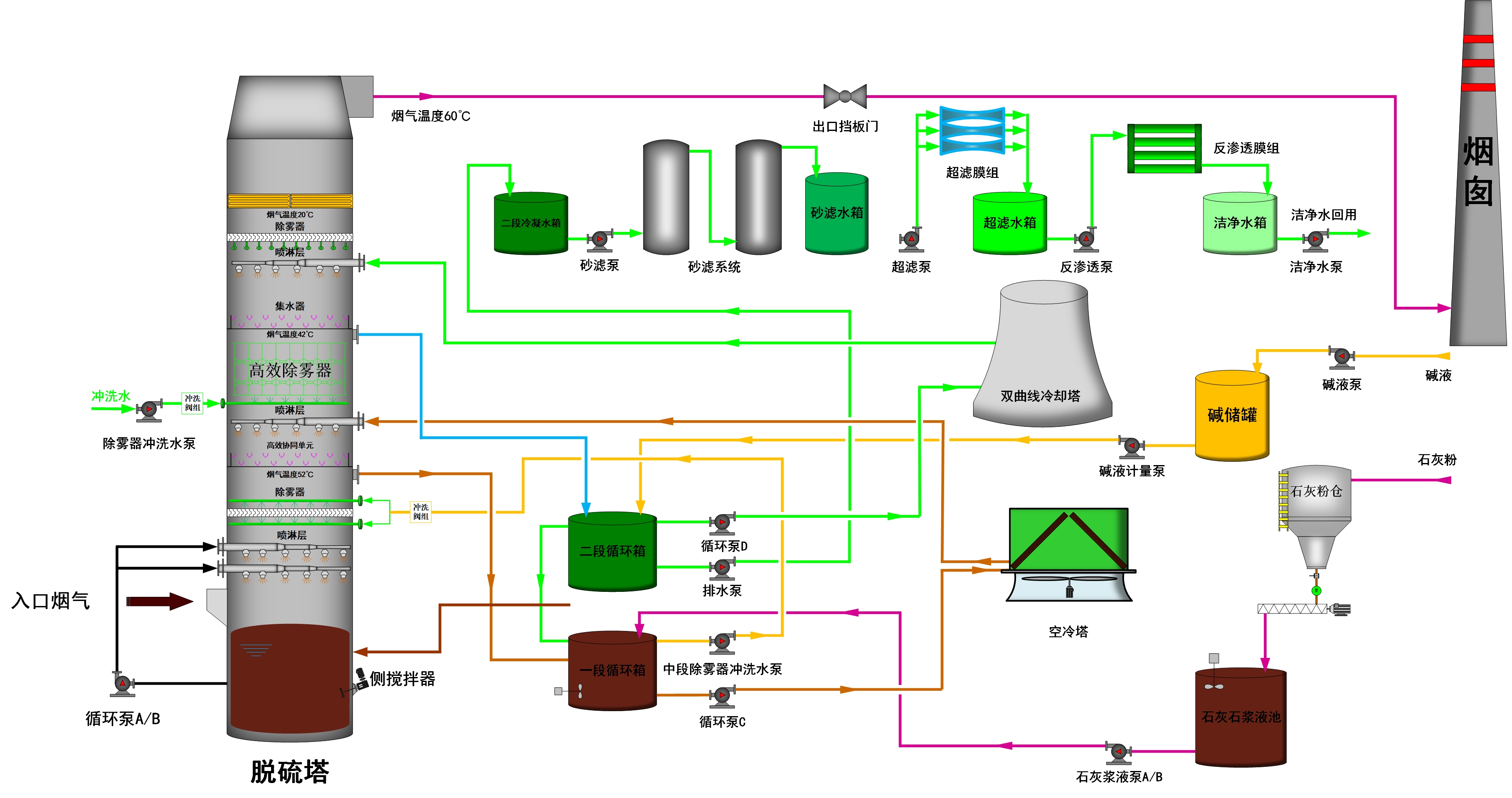 只需對濕法脫硫塔上段進(jìn)行改造,投資費(fèi)用少,整體改造周期<30天,運(yùn)行成本低。